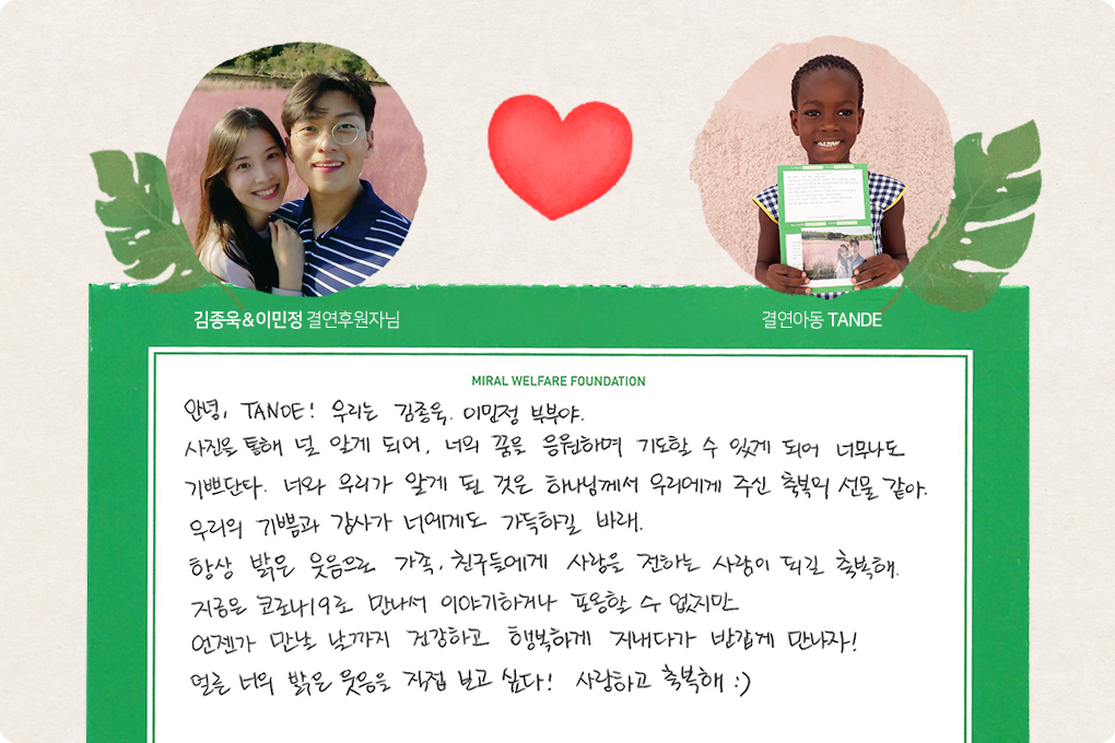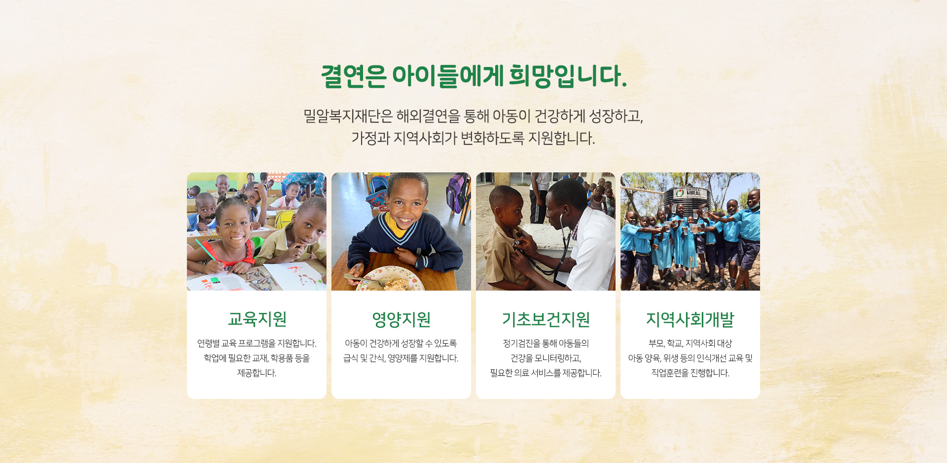 밀알복지재단은 해외결연을 통해 아동이 건강하게 성장하고,