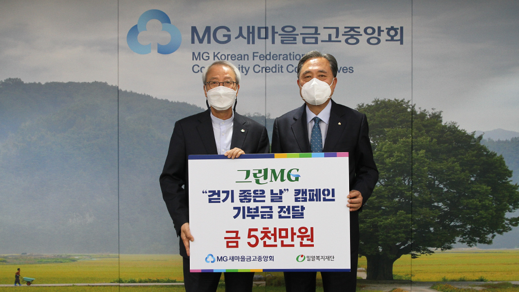 지난 24일(월), 강남구 삼성동에 위치한 MG새마을금고중앙회(회장 박차훈)에서 교통약자 이동권 지원을 위한 후원금 전달식이 진행되었습니다. 이번 전달식은 MG새마을금고 임직원들이 직접 교통약자를 위해 'Make Green' 걷기 캠페인을 진행하여 조성한 기금으로 진행되었습니다. 5억2천5백보를 목표로 시작한 이번 걷기 캠페인은 임직원들의 열심으로 16억보 기부걸음을 달성하여, 임직원들의 뜨거운 기부 열정을 느낄 수 있었습니다. 임직원들의 열정으로 조성된 기부금 5,000만원은 코로나가 장기화됨에 따라 이동에 어려움을 겪고 있는 교통약자를 위해 전동 휠체어 지원, 베리어프리 리모델링 공사 등 다양한 방향으로 교통약자 이동권 보장을 위해 지원금이 사용 될 예정입니다.