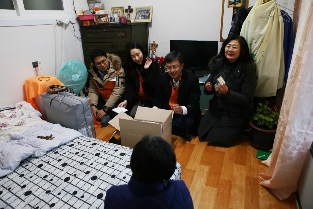 ‘따뜻한 마음 한 상자’ 캠페인은 생활에 필요한 물품을 구비하지 못하는 저소득 독거노인을 위해 식료품, 방한용품 등이 담긴 선물상자를 전달하는 참여형 기부 캠페인입니다. 이 캠페인을 통해 홀로 겨울을 나시는 어르신들을 직접 방문하여 생필품 키트를 지원하고 말벗이 되어드리며 정서적인 지원까지 진행하고 있습니다.