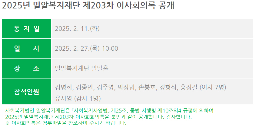 제203차 이사회회의록 공개