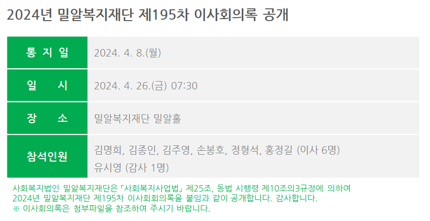 제195차 이사회회의록 공개