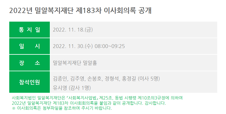 이전 제182차 이사회회의록 공개 다음 제184차 이사회회의록 공개