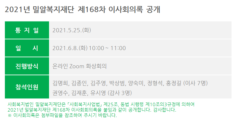 제168차 이사회회의록 공개