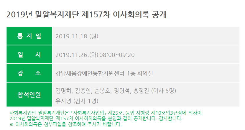 제157차 이사회회의록 공개