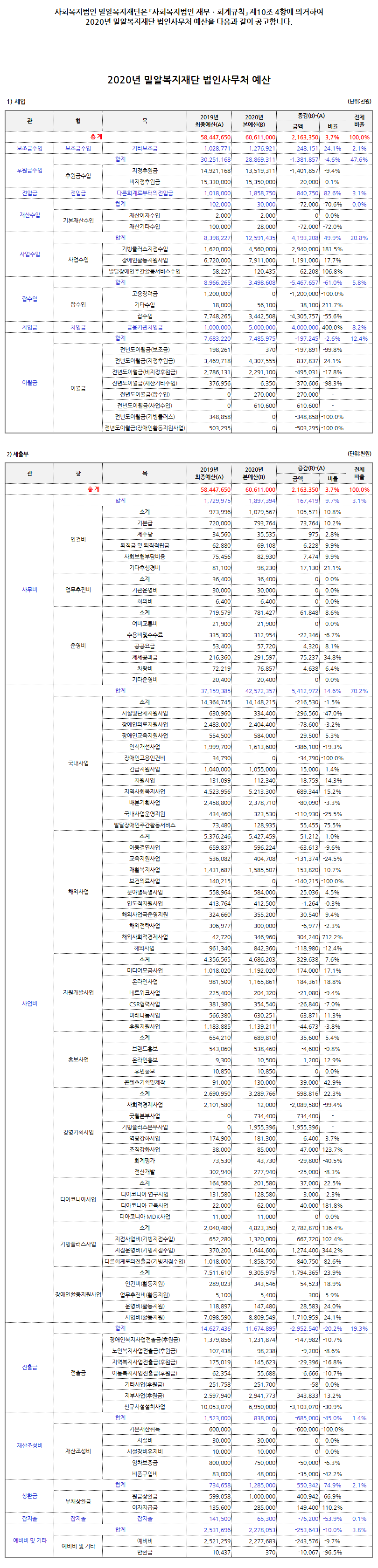 2020년 밀알복지재단 법인사무처 본예산 공고