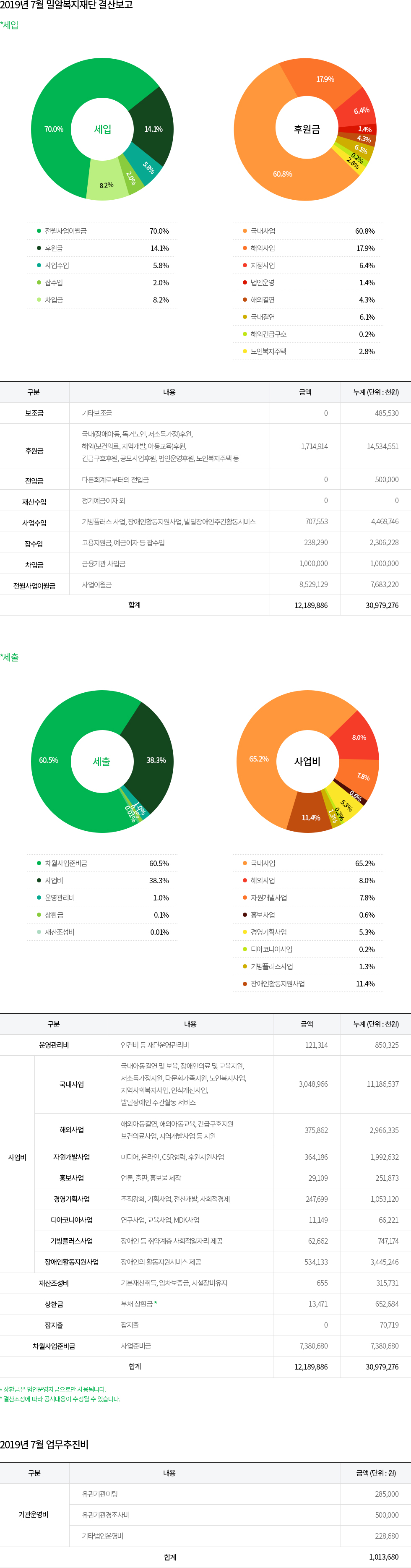 2019년 7월 밀알복지재단 법인사무처 결산보고 및 업무추진비 공개
