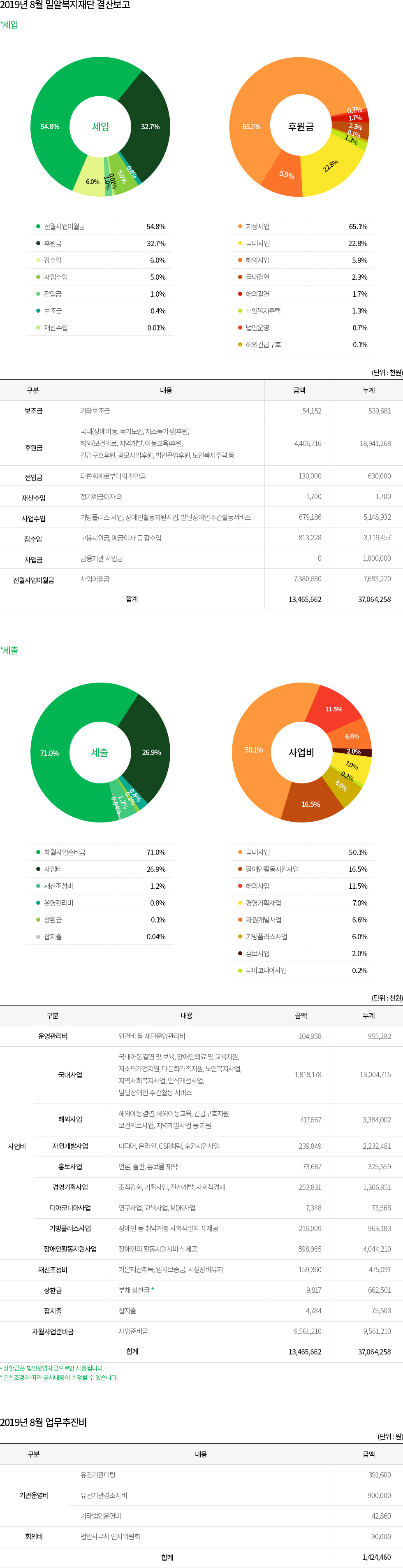 2019년 8월 밀알복지재단 법인사무처 결산보고 및 업무추진비 공개