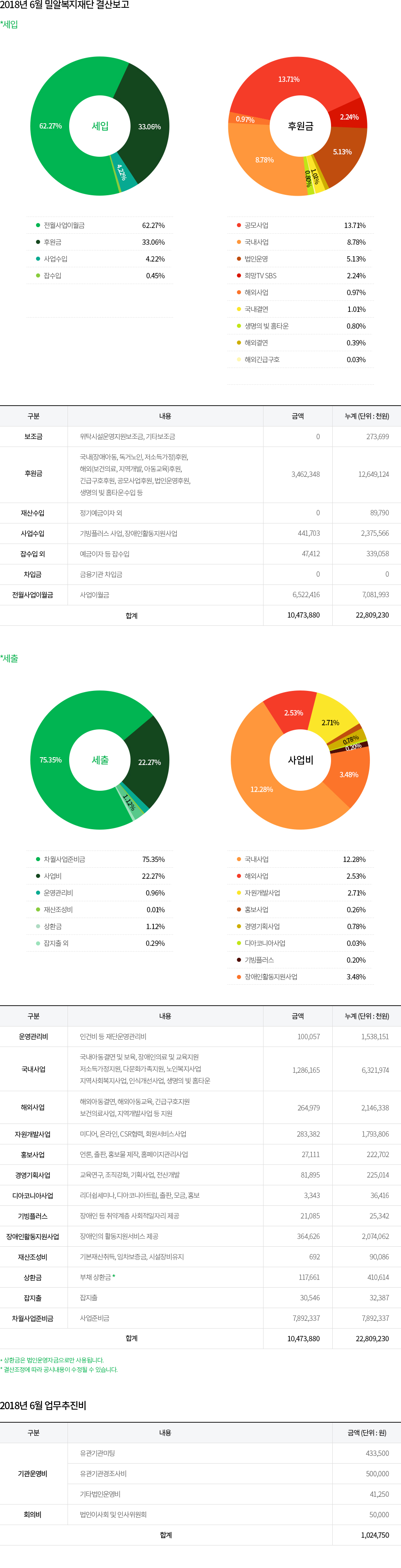 2018년 6월 밀알복지재단 법인사무처 결산보고 및 업무추진비 공개