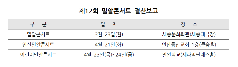 제12회 밀알콘서트 결산보고