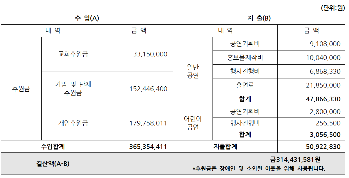 * 교회후원금(33,150,000원)