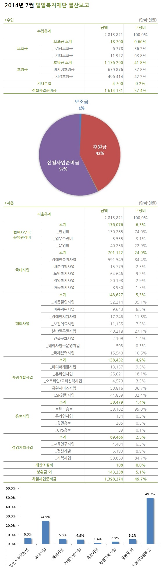 2014년 7월 밀알복지재단 결산보고
