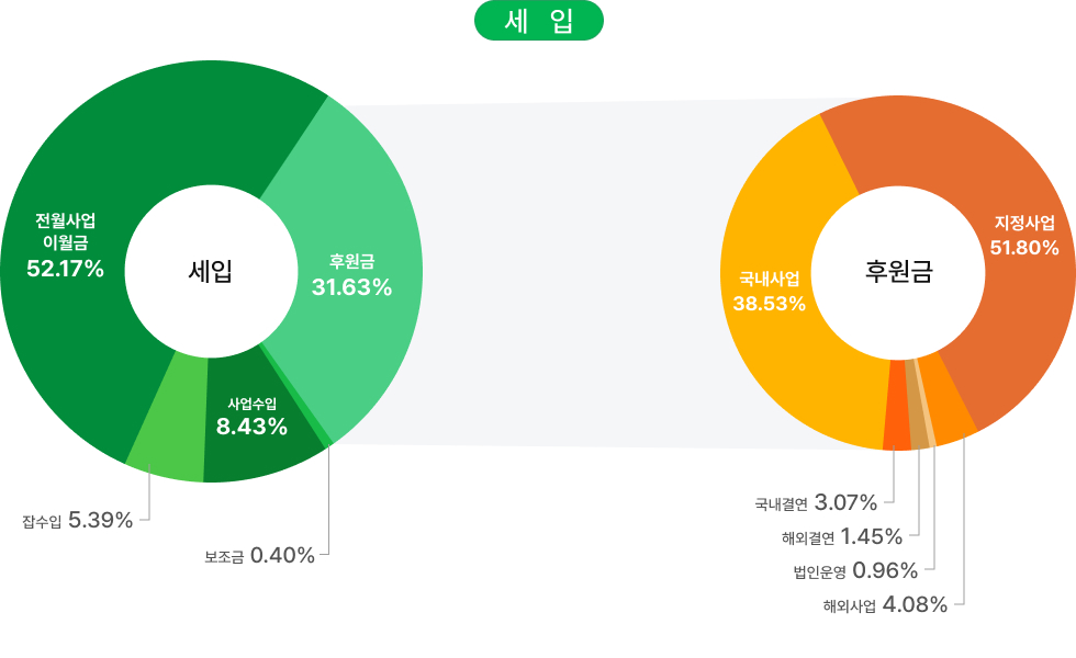 | 사업비 | 국내사업 | 국내아동결연 및 보육, 장애인의료 및 교육지원, 저소득가정 지원, 다문화가족 지원, 노인복지사업, 지역사회복지사업, 인식개선사업, 발달장애인작가양성지원사업, 발달장애인주간활동서비스, 장애인인식개선센터, 헬렌켈러지원센터 |