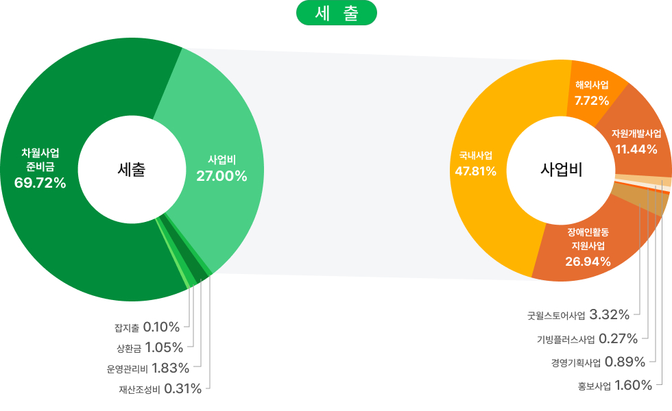사업비 국내사업 국내아동결연 및 보육, 장애인의료 및 교육지원,