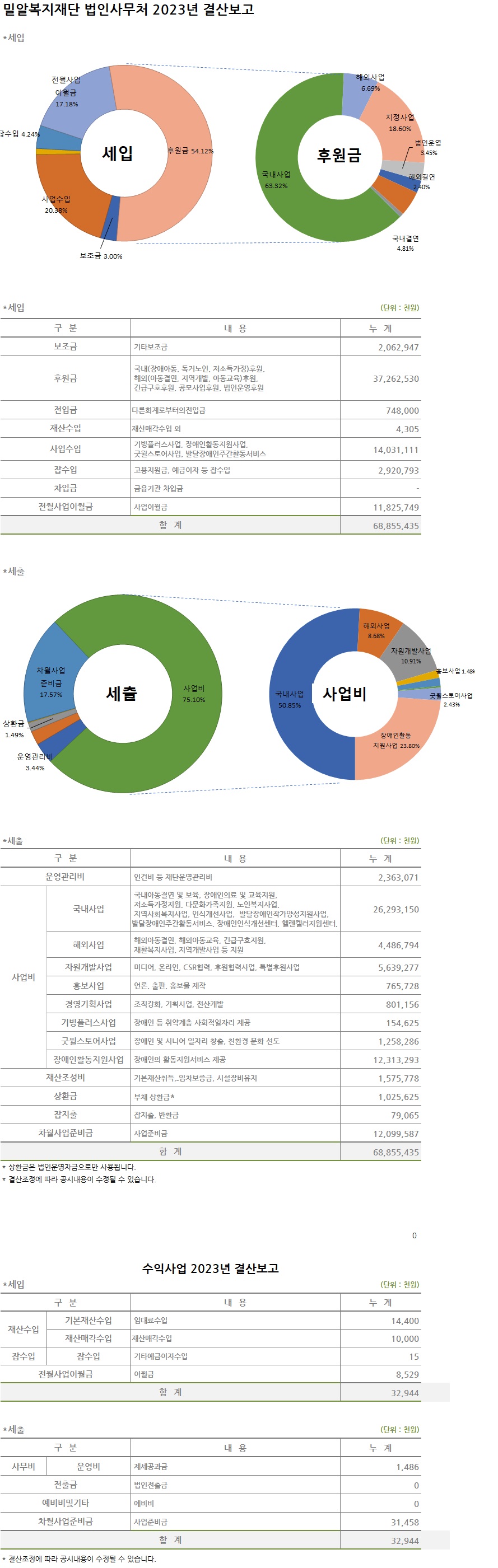 2023년 밀알복지재단 법인사무처 결산보고