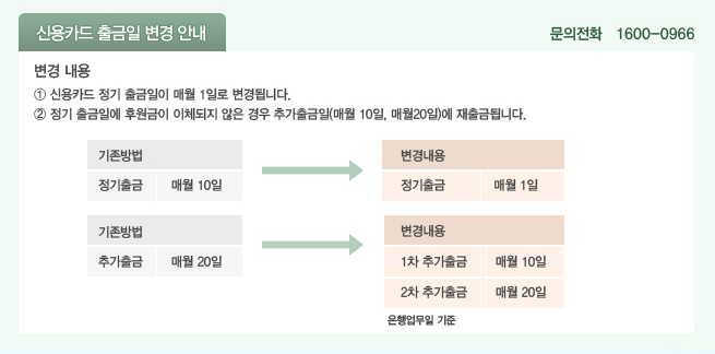 "2015년 1월"부터 아래와 같이 신용카드 출금일변경하고자 합니다.