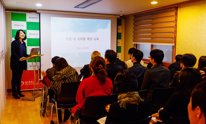 오늘 25일, 밀알복지재단 법인사무국에서는 전직원을 대상으로 성희롱예방교육을 실시했다.