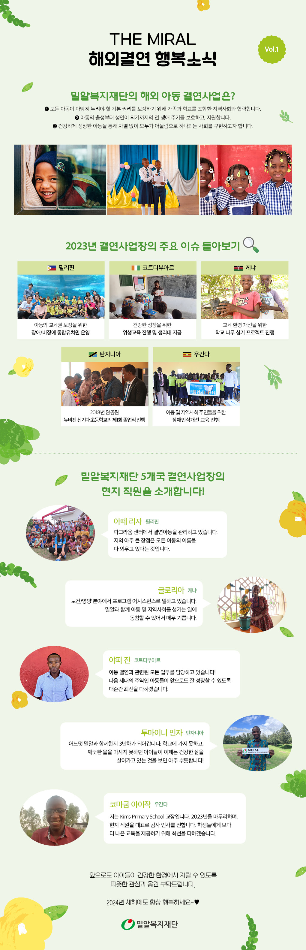 아이들의 삶을 바꾸는 소액기부 아이들의 삶을 바꾸는 소액기부 [지원후기] 은우야, 씩씩하게 자라줘서 고마워! [지원후기] 은우야, 씩씩하게 자라줘서 고마워! 정기소식지 'The Miral' 92호 정기소식지 'The Miral' 92호 2024 연차보고서 e-book 2024 연차보고서 e-book