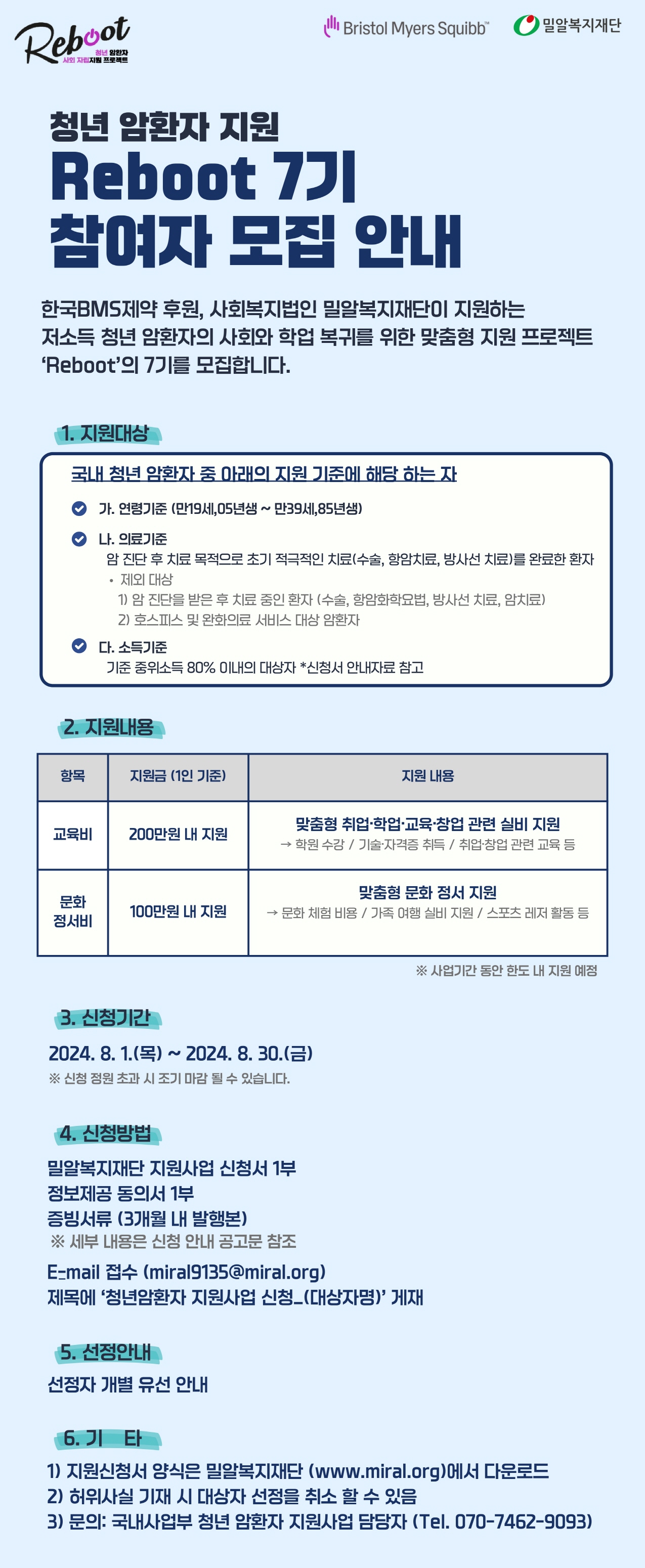 [마감]2024년-2025년 청년암환자 사회 자립지원 프로젝트 "REBOOT" 대상자 모집 안내