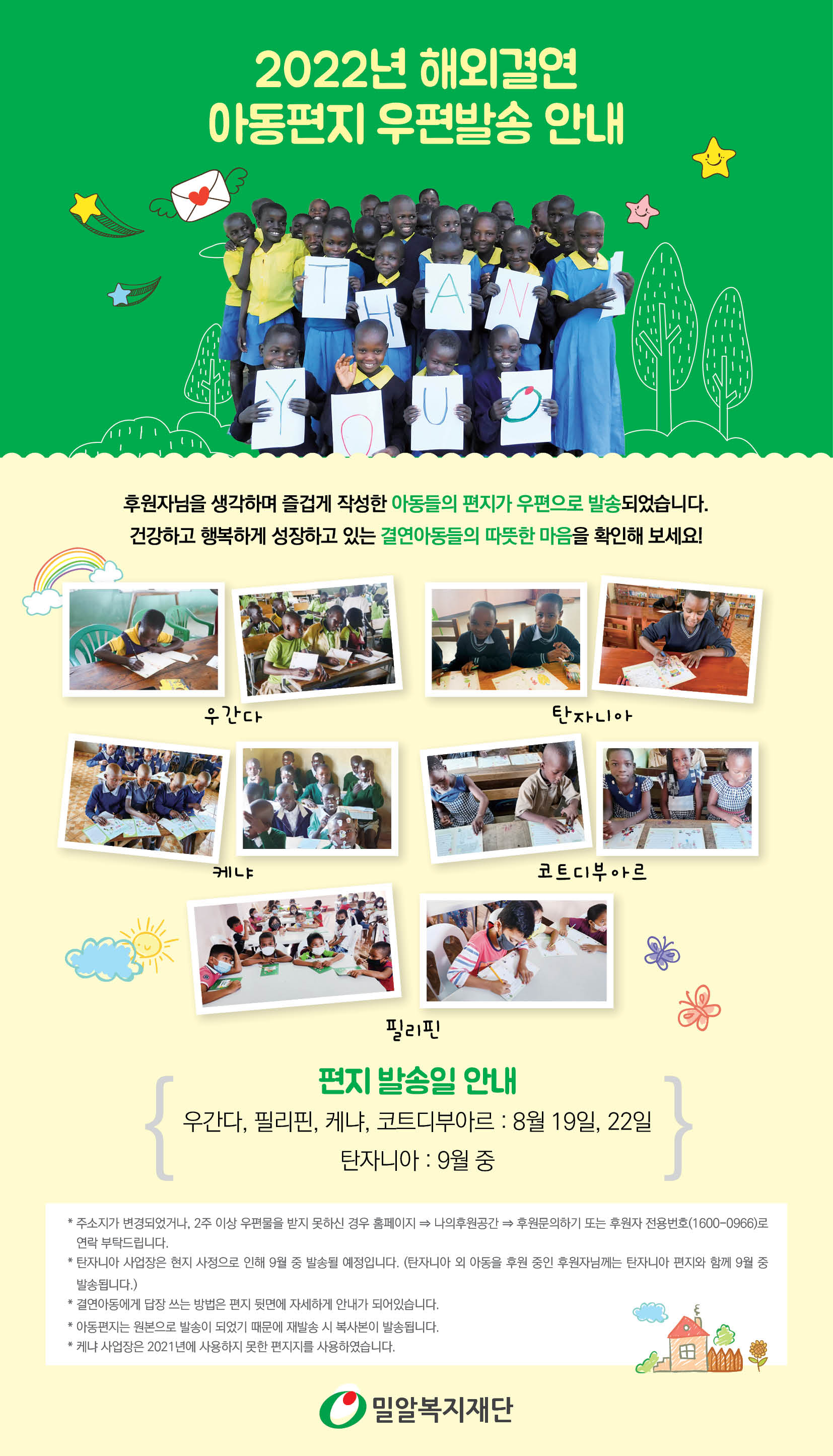 2022 해외결연 아동편지 우편 발송 안내