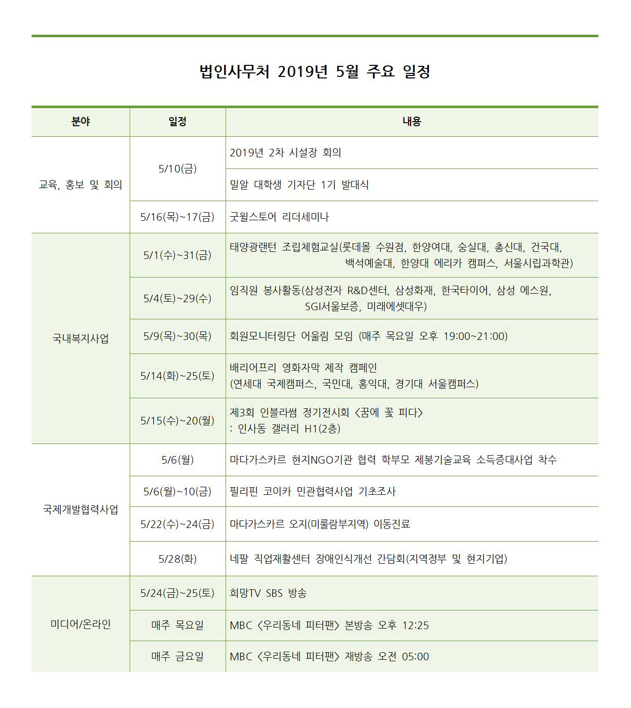 법인사무처 2019년 5월 주요일정