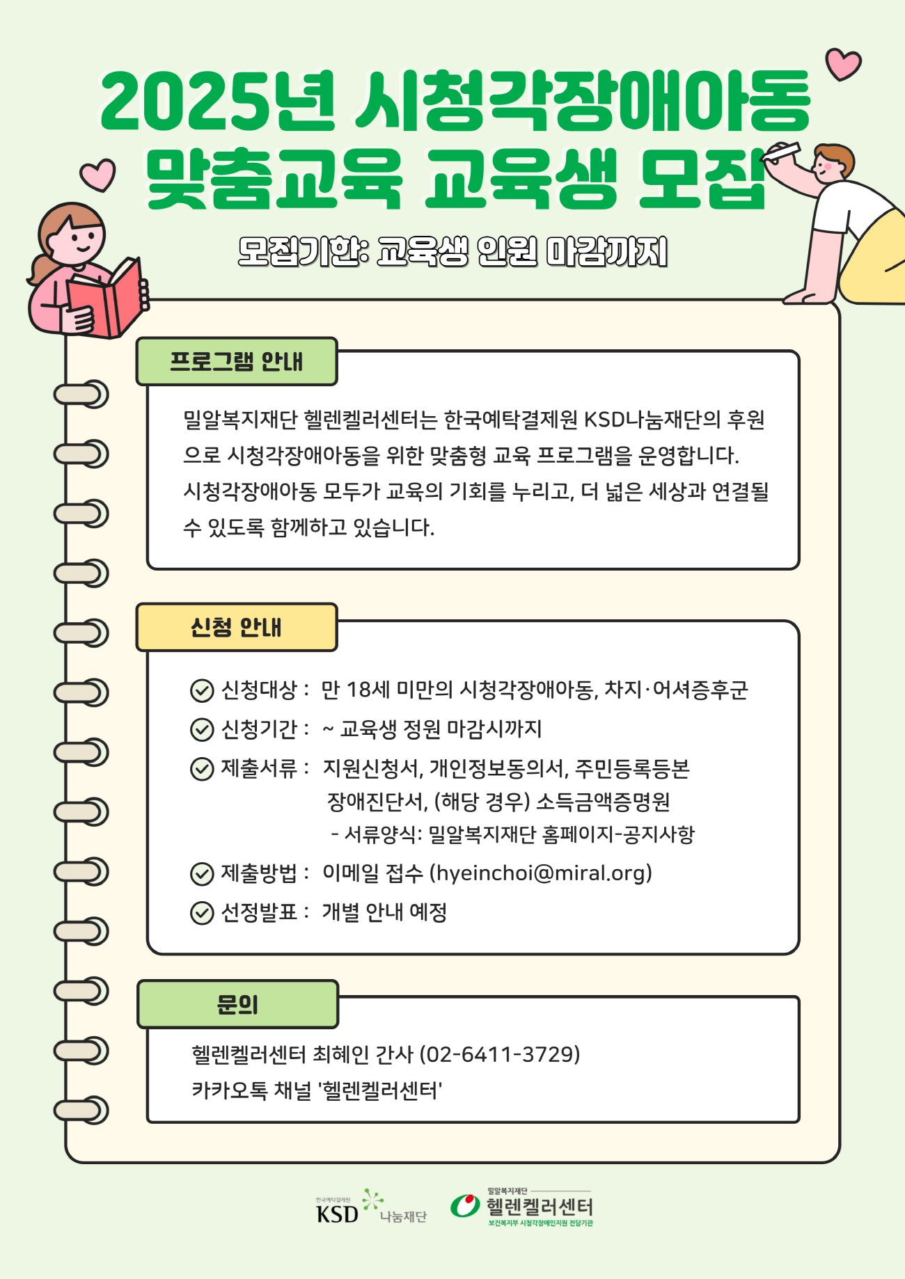 [모집] KSD나눔재단과 헬렌켈러센터가 함께하는 ‘시청각장애아동 맞춤교육 지원사업’ 참여자 (~모집 마감 시)