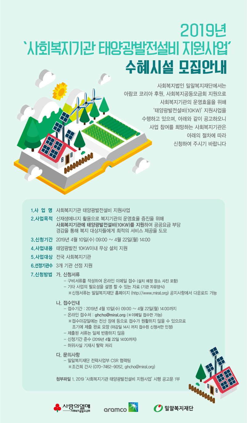 붙임. 아람코코리아 사회복지기관 태양광발전설비(10KW) 지원사업 시행공고.hwp