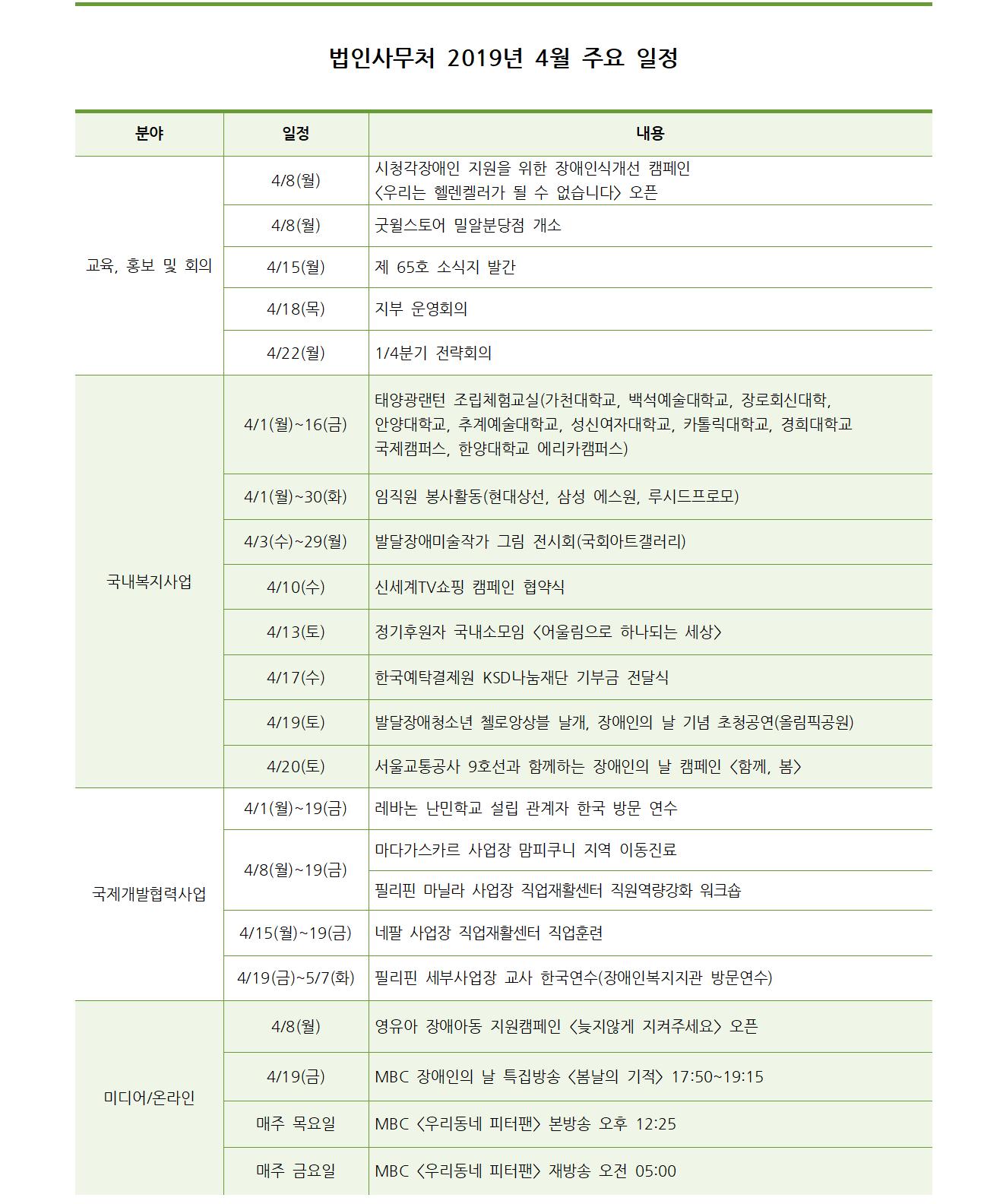 법인사무처 2019년 4월 주요일정