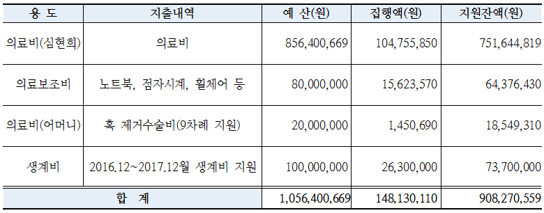 ○ 심현희 씨의 의료적 상황에 맞추어 재활치료비용을 지원할 예정입니다.