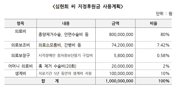 *심현희 씨를 위해 모아진 지정후원금은 심현희 씨와 그 가족을 위해 전액 사용됩니다.