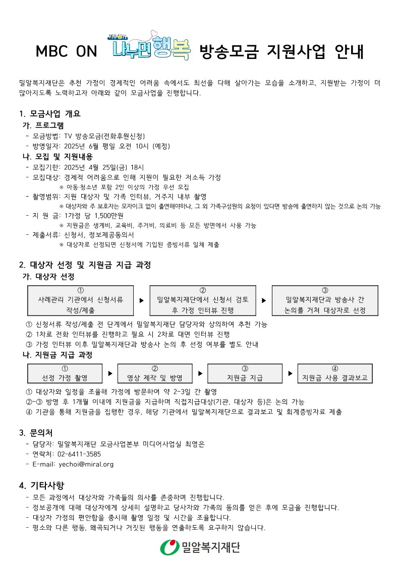 [마감][MBC ON 나누면행복] 방송모금 지원사업 안내