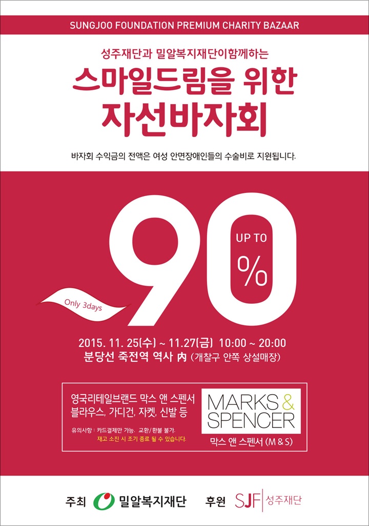 밀알복지재단이 주최하고 성주재단이 후원하는 스마일드림 자선바자회가 분당선 죽전역에서 열립니다.