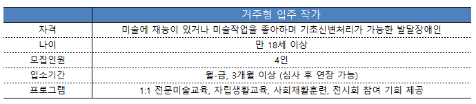 5. 입소비용 월 60만원(식비, 미술교육비, 사회재활훈련비 모두 포함)