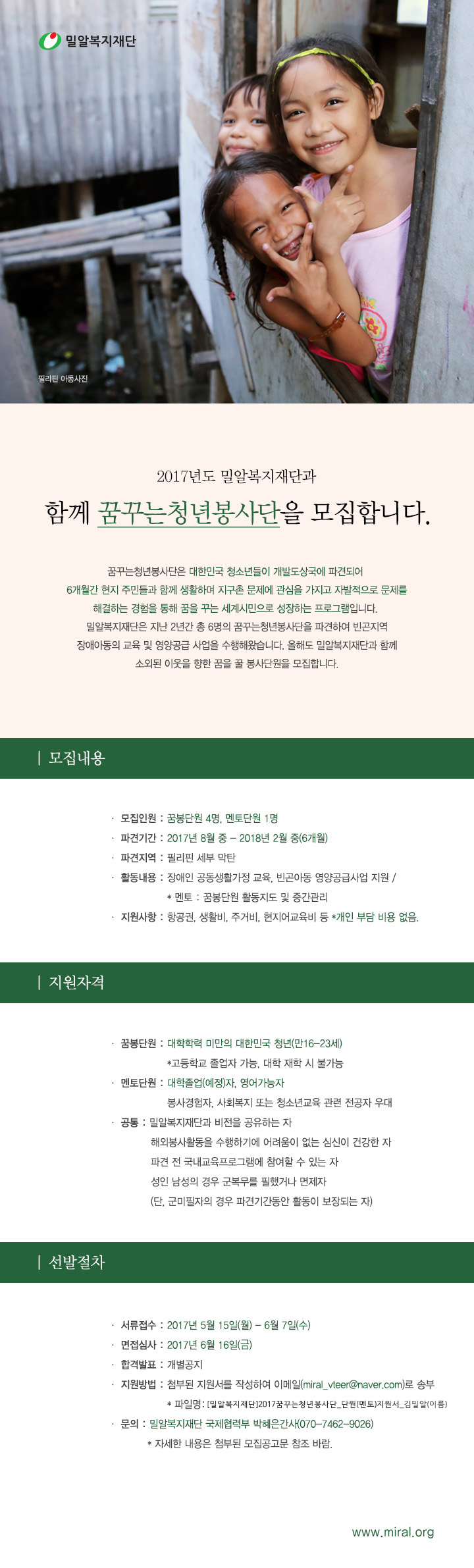 (마감)2017년 꿈꾸는청년봉사단(청소년 해외봉사)을 모집합니다.
