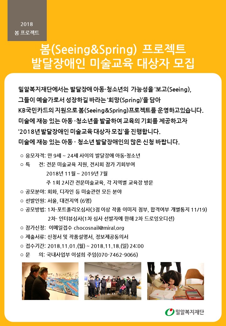 [마감] 봄 프로젝트 발달장애인 미술교육 대상자 모집(~11/18)