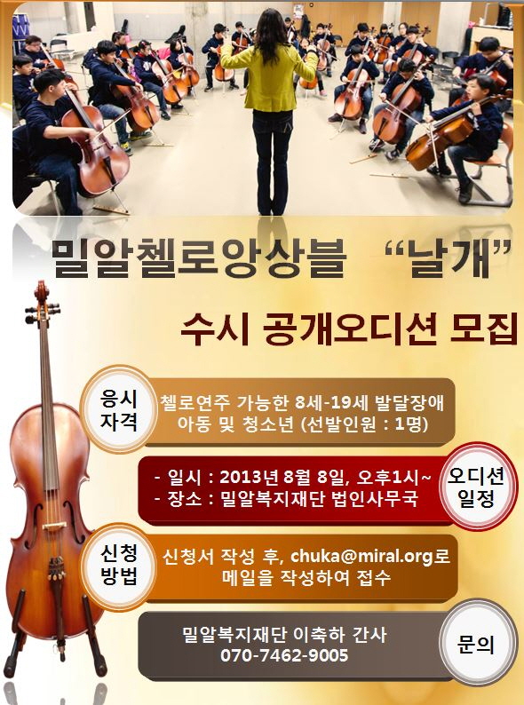 밀알첼로앙상블 "날개" 수시 공개오디션 모집