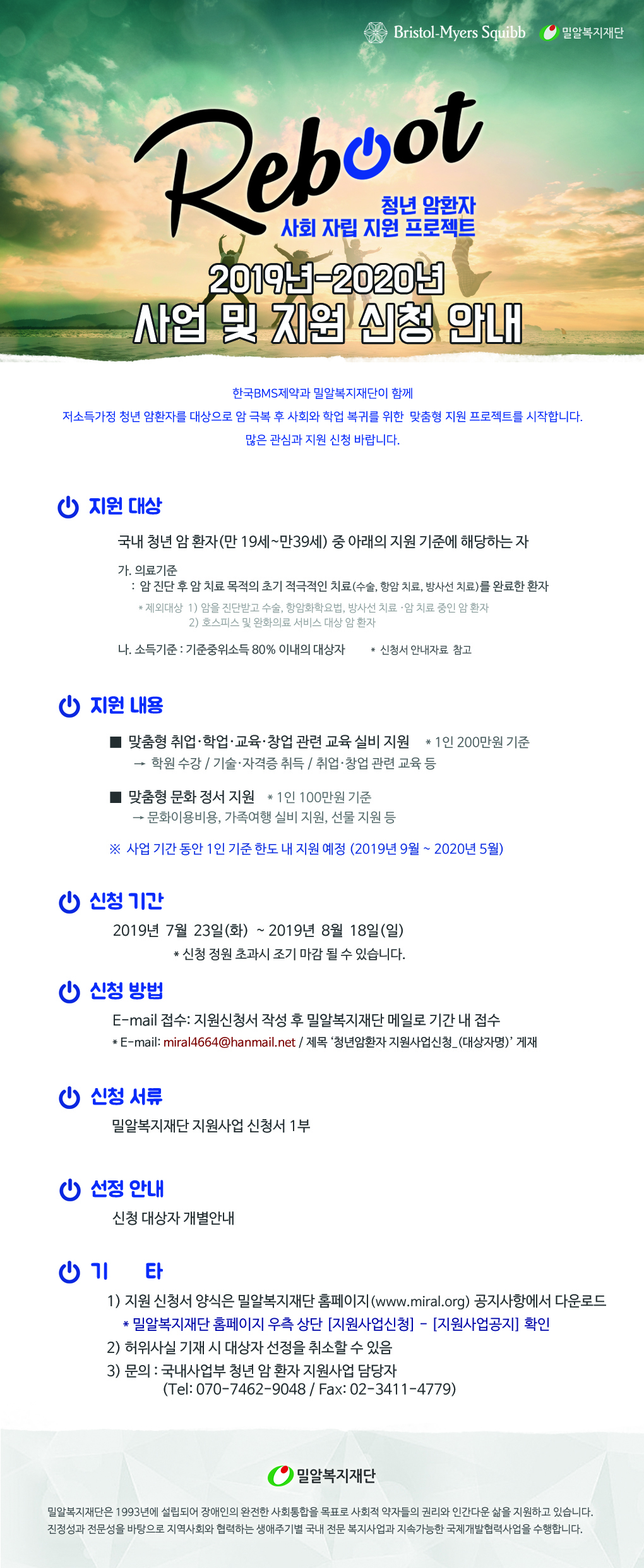[마감] 한국BMS제약과 함께하는 REBOOT 청년암환자 지원사업 대상자 모집안내(~8/18)