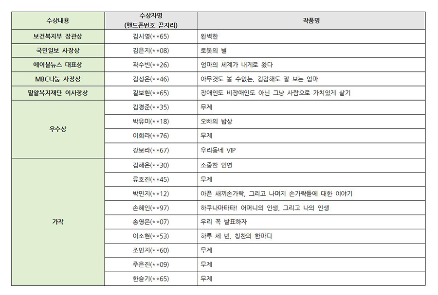 수상자들에게는 시상식 참여를 위해 개별 연락이 갈 예정이니 참고바랍니다.