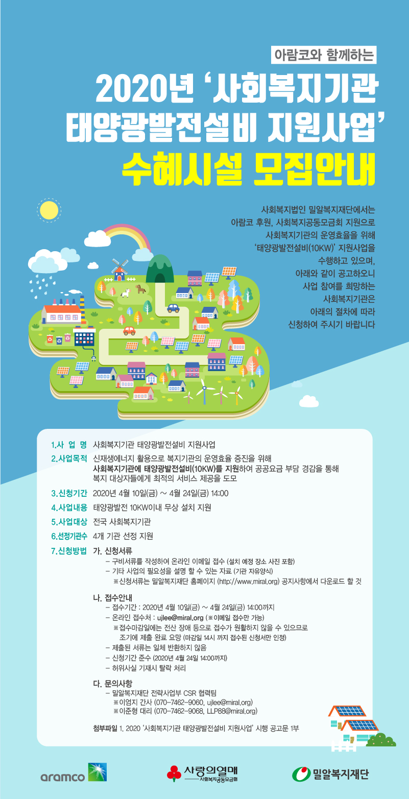 [마감] 아람코와 함께하는 ‘사회복지기관 태양광발전설비 지원사업’ 기관 모집(~4/24)