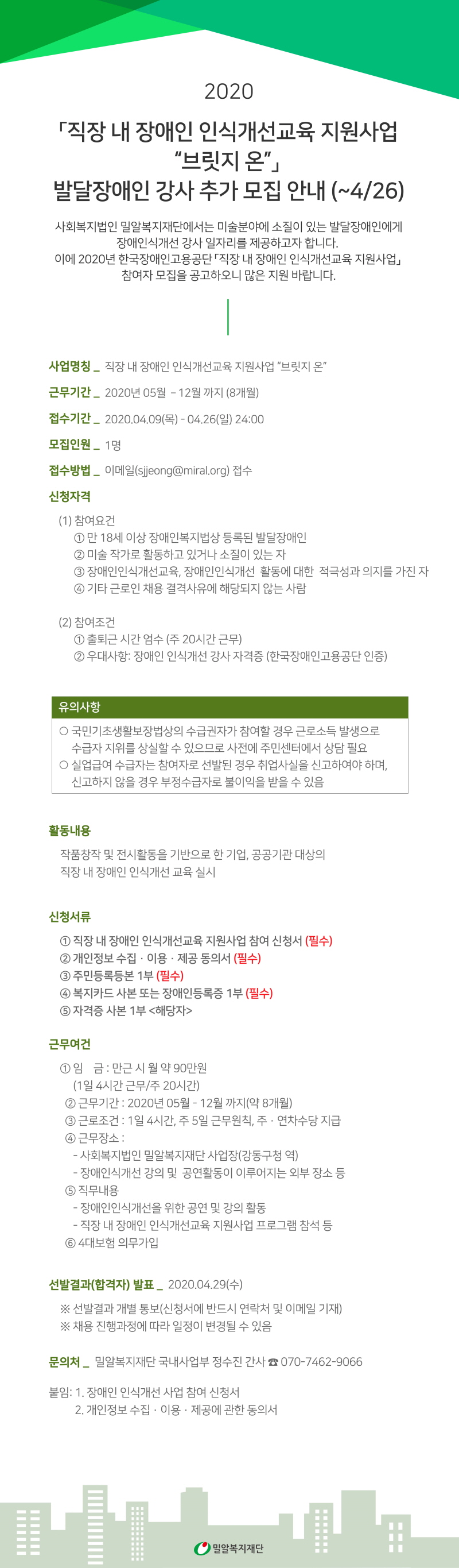 [마감] 직장 내 장애인 인식개선 교육 지원사업 ‘브릿지온’ 참여자 추가모집(~4/26)