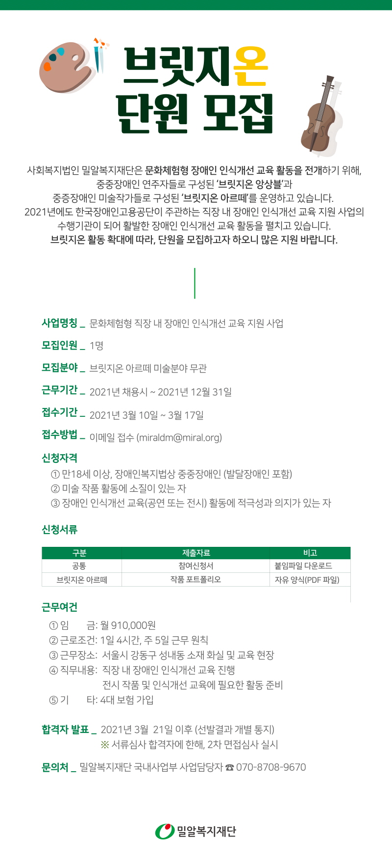 [마감] 직장 내 장애인 인식개선 교육 지원 사업 '브릿지온' 단원 모집 연장 (~3/17)