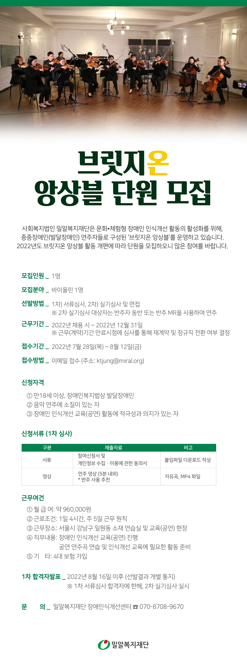 [마감] 2022년 브릿지온 앙상블 단원 모집 (~8/12)