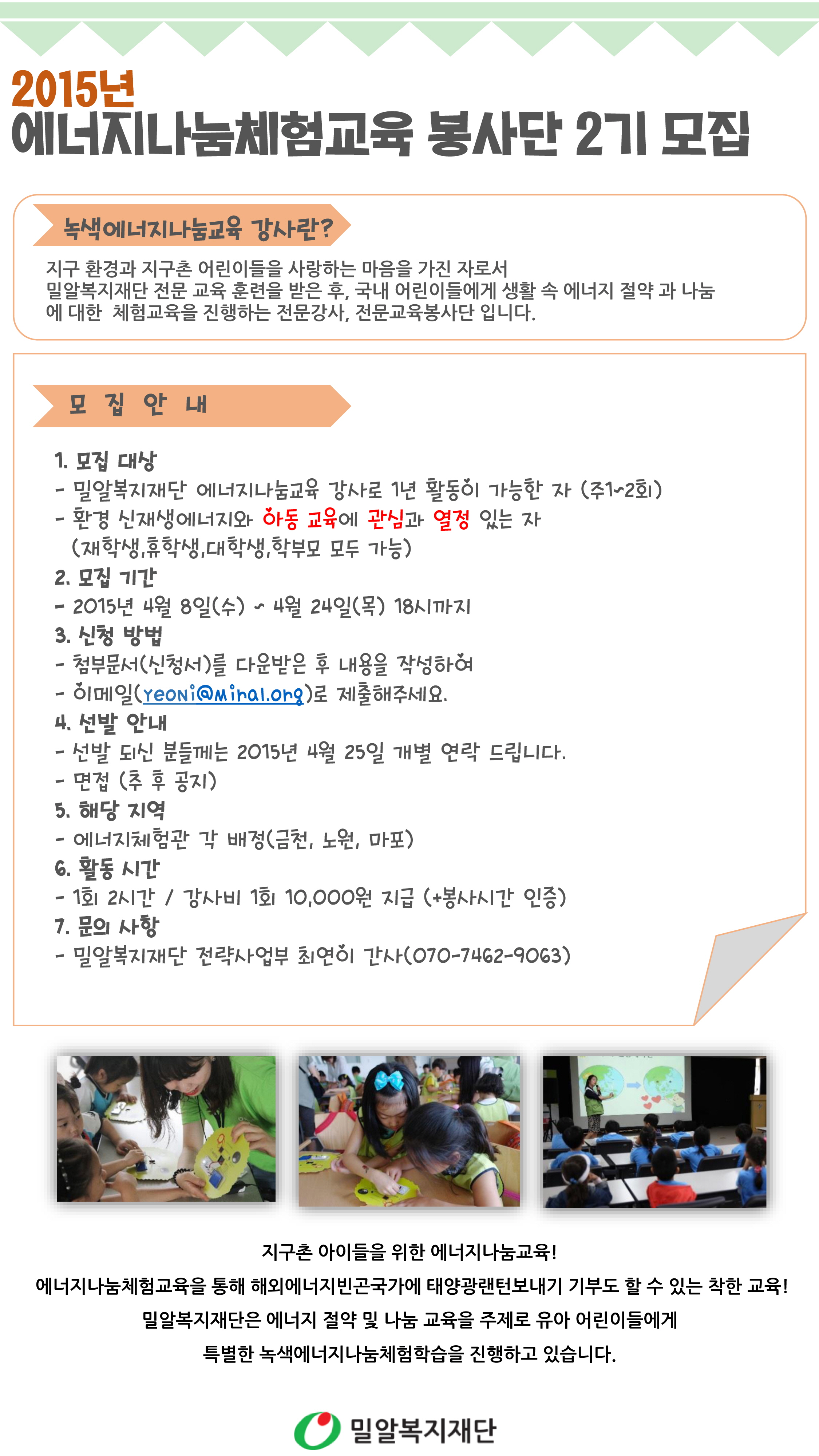 2015년 에너지나눔체험교육 봉사단 2기 모집