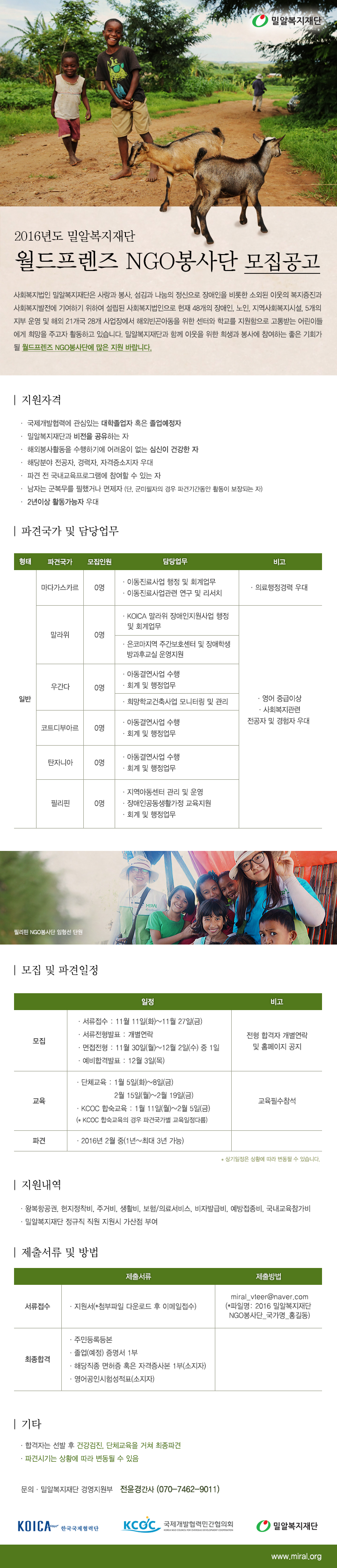 (종료)2016년도 월드프렌즈 NGO봉사단 모집공고
