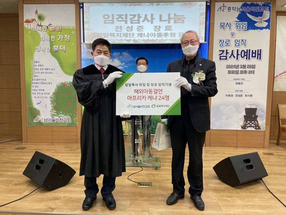 흥덕남서울비전교회 양용전 목사는 “앞으로도 성도들과 나눔을 실천하며 하나님께서 기뻐하시는 교회가 될 수 있도록 하겠다”며 “담임목사와 장로의 직분을 감당하는 날 결연후원이라는 뜻깊은 나눔을 함께 시작할 수 있게 돼 기쁘다”고 소감을 전했다.