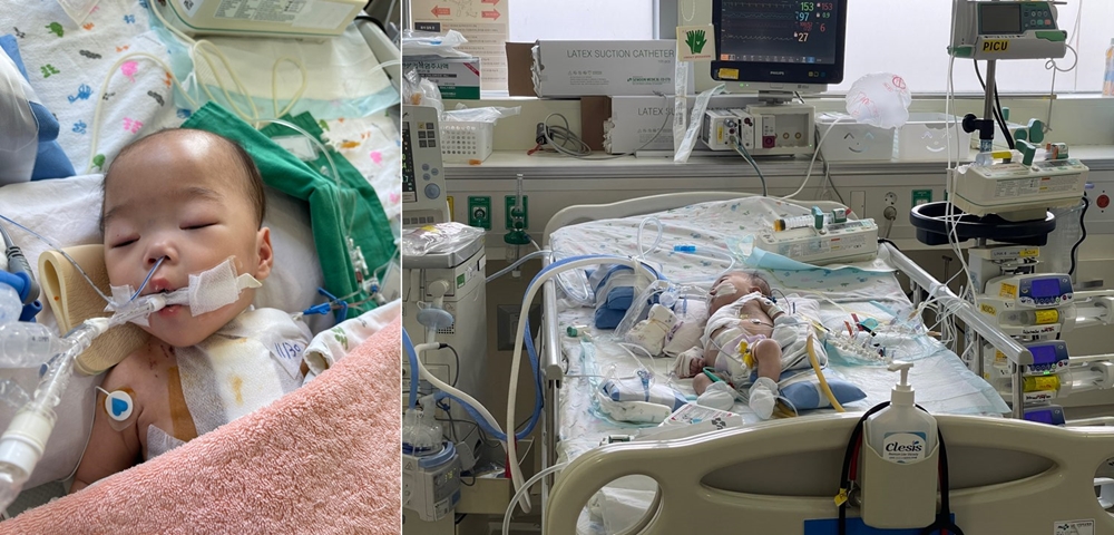 [사진2] 선천성 심장병으로 중환자실에서 치료중인 김의론(1) 아동