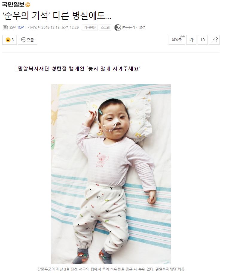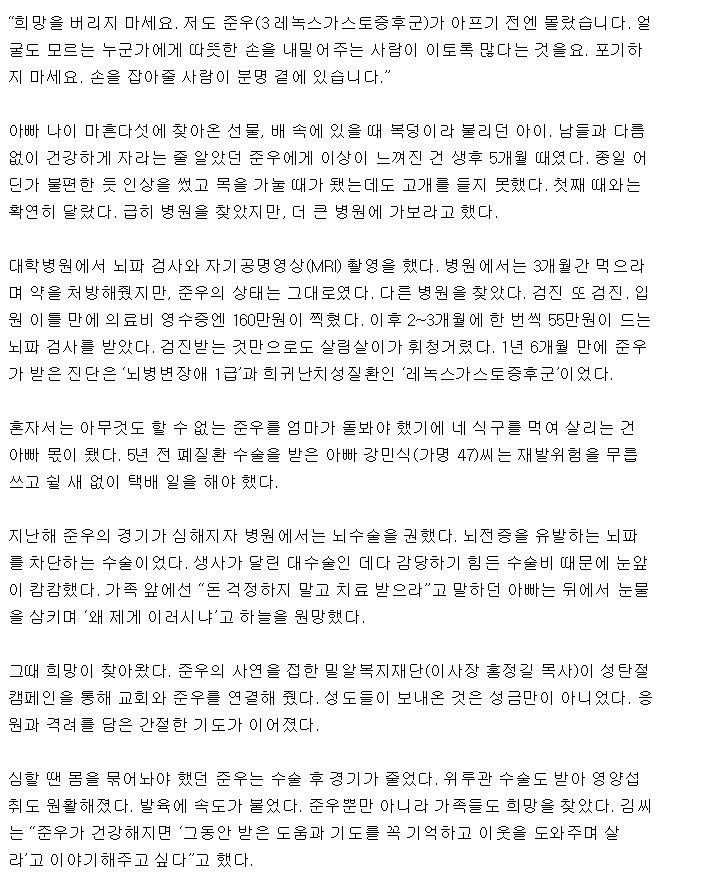[국민일보] ‘준우의 기적’ 다른 병실에도…