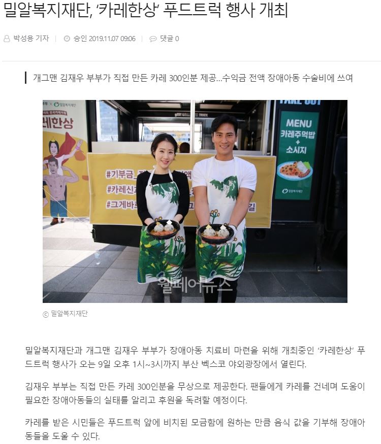 [데일리굿뉴스] 개그맨 김재우 부부, 직접 만든 카레로 장애아동 돕는다