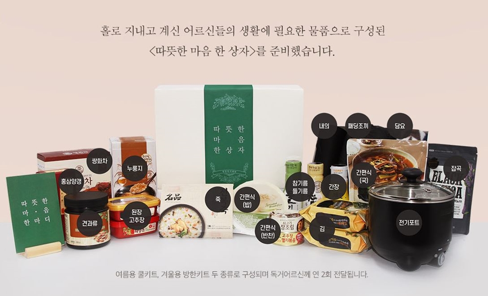■ 정기후원으로 저소득 독거노인에게 식료품과 영양제 등이 담긴 ‘따뜻한 마음 한 상자’ 전달하는 캠페인