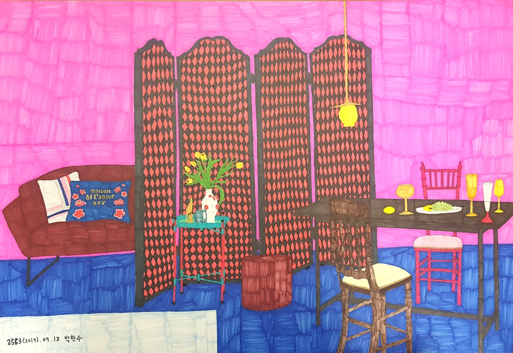 △ <식당> 박한수, marker on paper, 54.5x78.8cm, 2019