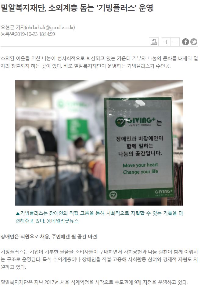 [데일리굿뉴스] 밀알복지재단, 소외계층 돕는 '기빙플러스' 운영